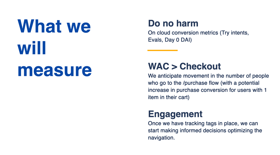 First, updates made to the purchase flow almost always result in a short-term dip in conversion numbers, and we need to give our business analyst team a granular breakdown of changes to the site.